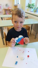 Творческая часть занятий была насыщенной и разнообразной! Дети выкладывали флаг из мозаики и конструктора, рисовали его акварелью и гуашью, лепили из пластилина. Особенно запомнилось ребятам украшение зеленых сердечек флагами, раскрашенными в цвета российского триколора. Эта работа символизирует любовь к Родине и стремление России к движению вперед.